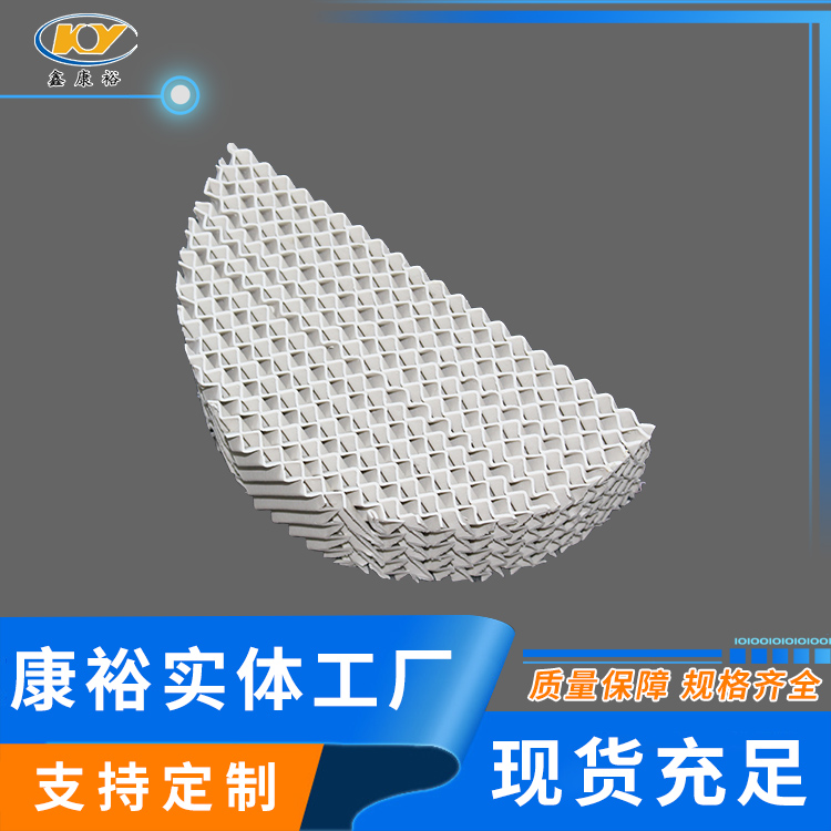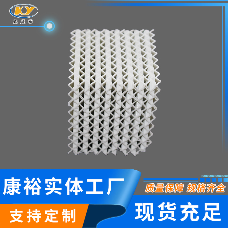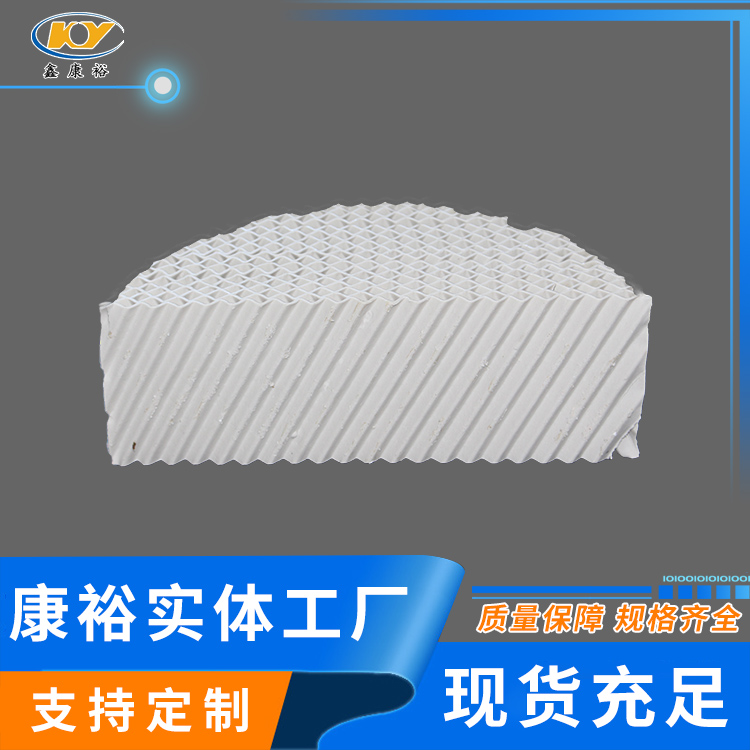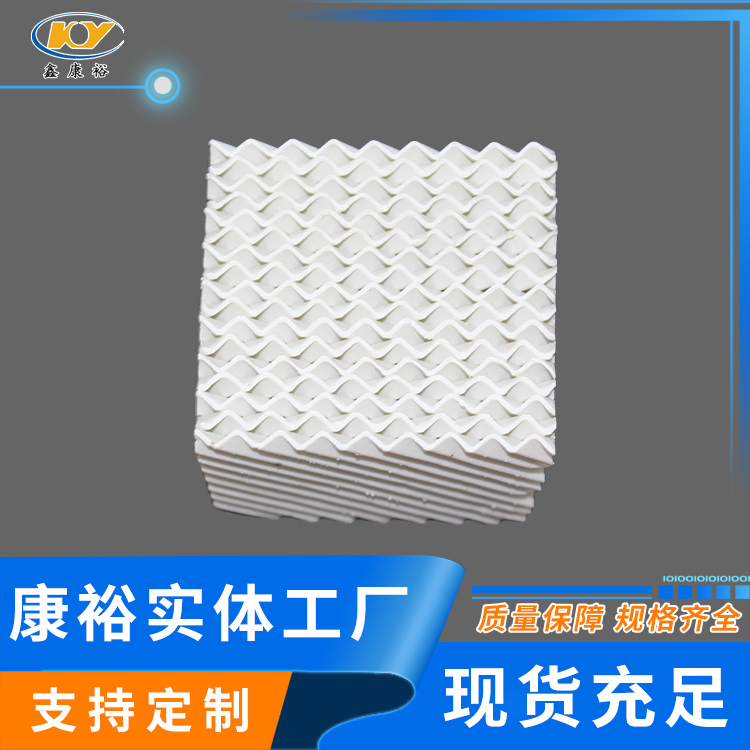陶瓷波紋填料是一種新型規(guī)整填料,它是由許多具有相同幾何形狀的填料單元體組成。由于陶瓷的結(jié)構(gòu),具有良好的親水性能,其表面可形成極薄的液膜的湍動及氣流的傾斜曲折通道能氣流但又不阻擋氣流使陶瓷填料能與金屬填料相匹敵,而其耐腐蝕、耐高溫性能金屬填料卻無法相比。表面結(jié)構(gòu)有良好的濕潤性能,能使液體加快流動、使填料滯液量降至低。從而降低了過熱、聚合和結(jié)焦的機會。